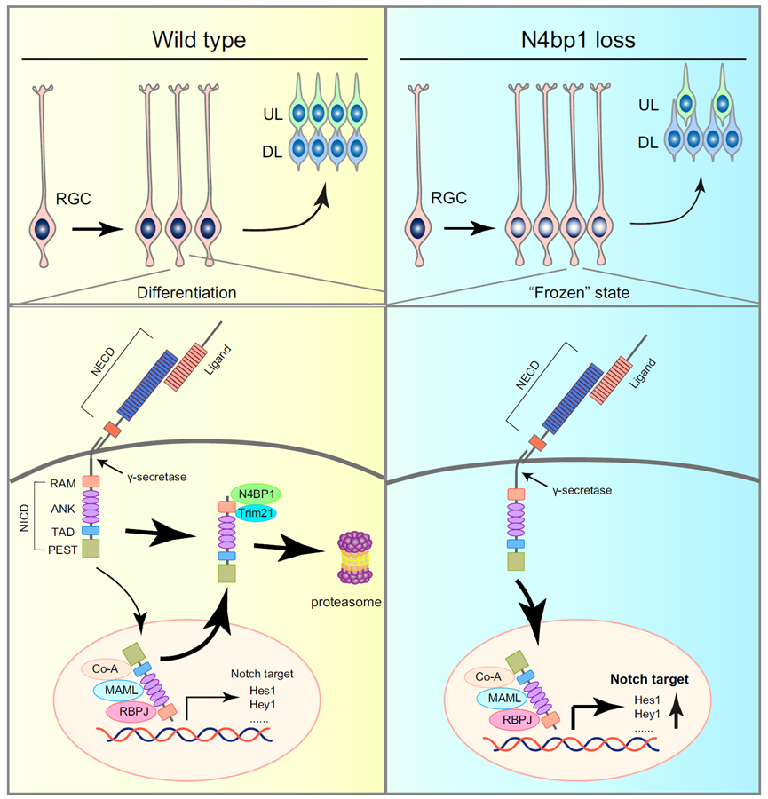 2023年10月09日,中國(guó)醫(yī)學(xué)科學(xué)院基礎(chǔ)醫(yī)學(xué)研究所彭小忠研究員和舒鵬程副研究員團(tuán)隊(duì)在EMBO J《歐洲分子生物學(xué)會(huì)會(huì)志》發(fā)表了題為“N4BP1 mediates RAM domain-dependent notch signaling turnover during neocortical development”(N4BP1介導(dǎo)新皮質(zhì)發(fā)育過(guò)程中RAM結(jié)構(gòu)域依賴的Notch信號(hào)調(diào)控)的論文。揭示了N4BP1 (NEDD4 binding protein 1) 在哺乳動(dòng)物大腦發(fā)育過(guò)程中的作用,發(fā)現(xiàn)其能通過(guò)降解NICD來(lái)控制神經(jīng)干細(xì)胞的增殖/分化抉擇(proliferation/differentiation choices)。