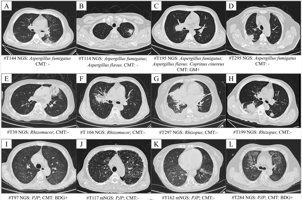 隨后,研究者對血液樣本病原mNGS檢測在疑似肺部真菌感染患者中的診斷價值進(jìn)行分析。結(jié)果顯示,曲霉、毛霉、肺孢子菌這三種血液病患者肺部感染最常見的真菌病原,檢出率分別為14.2%、8.1%和5.0%。其中粒缺患者曲霉檢出率高于非粒缺患者,檢出曲霉的23名患者中,傳統(tǒng)微生物學(xué)檢測僅檢出10名患者。對檢出真菌的46名患者,臨床醫(yī)生對其半數(shù)以上進(jìn)行了藥物調(diào)整,優(yōu)化了抗真菌感染治療策略。