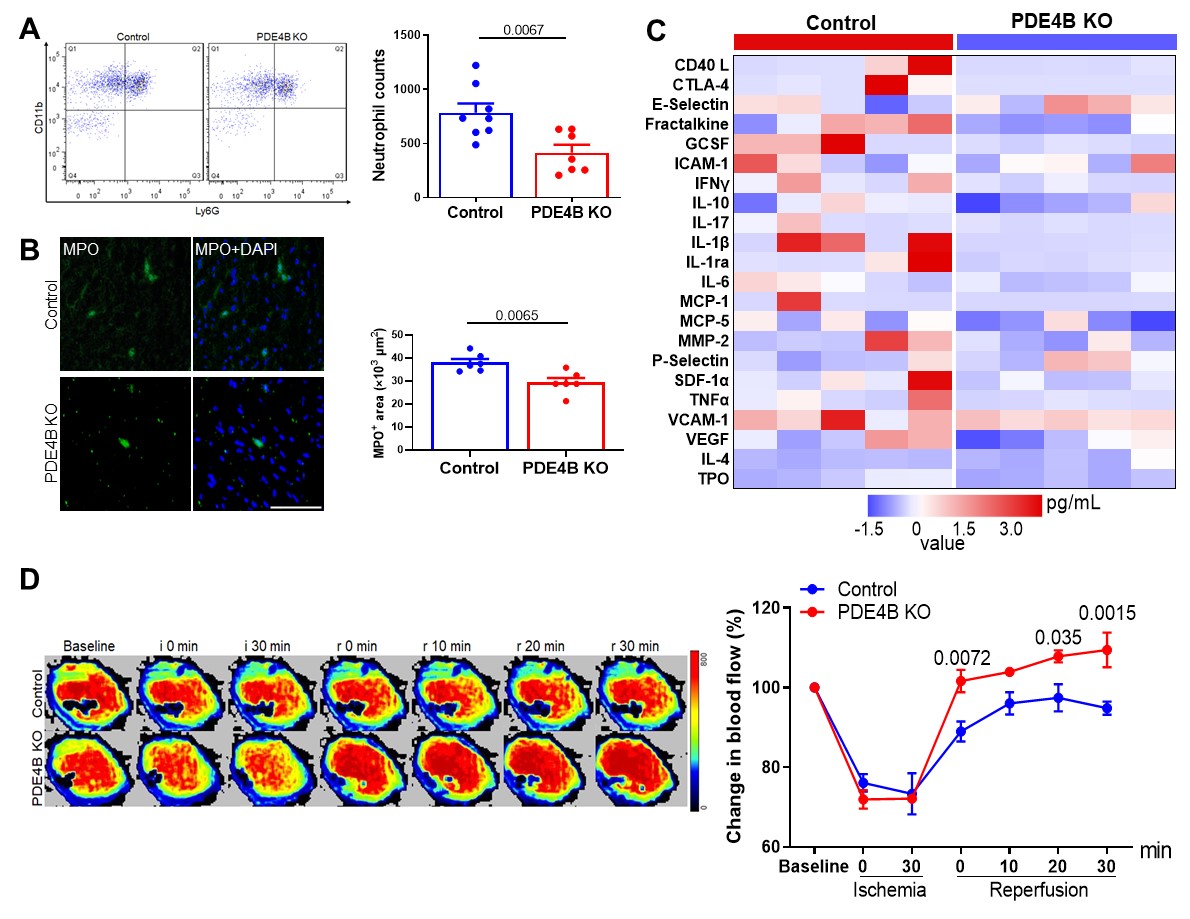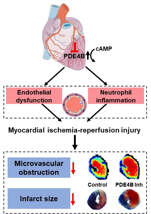2022年7月28日,中國醫(yī)學科學院阜外醫(yī)院王淼研究團隊在Circulation Research《循環(huán)研究》在線發(fā)表了題為“Targeting PDE4B (Phosphodiesterase-4 Subtype B) for Cardioprotection in Acute Myocardial Infarction via Neutrophils and Microcirculation”(靶向磷酸二酯酶4B通過中性粒細胞和微循環(huán)對急性心肌梗死的心臟保護作用)的論文,報道磷酸二酯酶4B(PDE4B)通過介導中性粒細胞炎癥反應和微循環(huán)障礙在心肌缺血再灌注(MI/R)損傷中發(fā)揮關鍵作用。