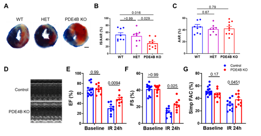圖1. PDE4B敲除保護小鼠心肌缺血再灌注損傷