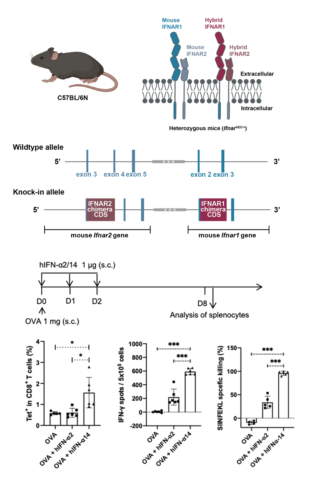 圖. IFNAR-hEC小鼠模型的構(gòu)建策略及其在人IFN-α亞型研究中的應用