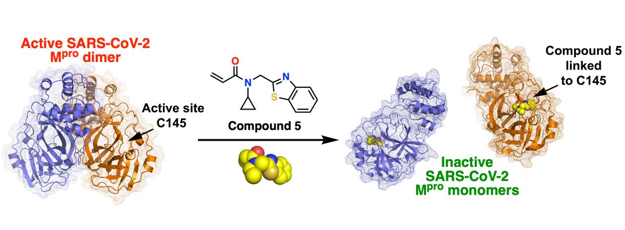 圖. 化合物5通過改變SARS-CoV-2 Mpro 的聚集狀態(tài)而發(fā)揮抑制作用