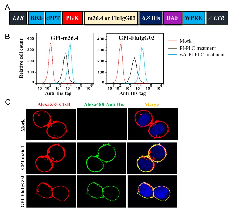 “柏林病人”和“倫敦病人”的成功治愈,提示給患者輸入具有HIV抗性的造血干細胞(HSC)或T淋巴細胞有可能是治愈或功能性治愈艾滋病的有效途徑。前期研究中,病原生物學研究所何玉先課題組基于強效廣譜的基于多肽的HIV膜融合抑制劑,通過GPI錨定方式成功制備了廣譜HIV抗性細胞(J Virol, 2019)。與多肽膜融合抑制劑作用靶點不同,本研究利用靶向gp120蛋白亞基的HIV納米抗體m36.4,證實了細胞膜表面表達的HIV納米抗體GPI-m36.4能有效地抑制游離病毒(Cell-free virus)和細胞相關病毒(Cell-associated virus)的入侵和感染。此外,機制研究發(fā)現(xiàn)GPI-m36.4能夠影響病毒包膜蛋白(Env)的加工處理過程和子代病毒的感染性,從而提示其多途徑的抗病毒作用。該研究從不同角度證實了強效納米抗體制備HIV抗性細胞的能力,提供了一個新的基因治療策略,為開展艾滋病基因治療的深入研究奠定了基礎。本研究結(jié)果于2021年1月18日在Cellular & Molecular Immunology上發(fā)表了題為《Generation of HIV-Resistant Cells with a Single-Domain Antibody: Implication for HIV-1 Gene Therapy》的論文。