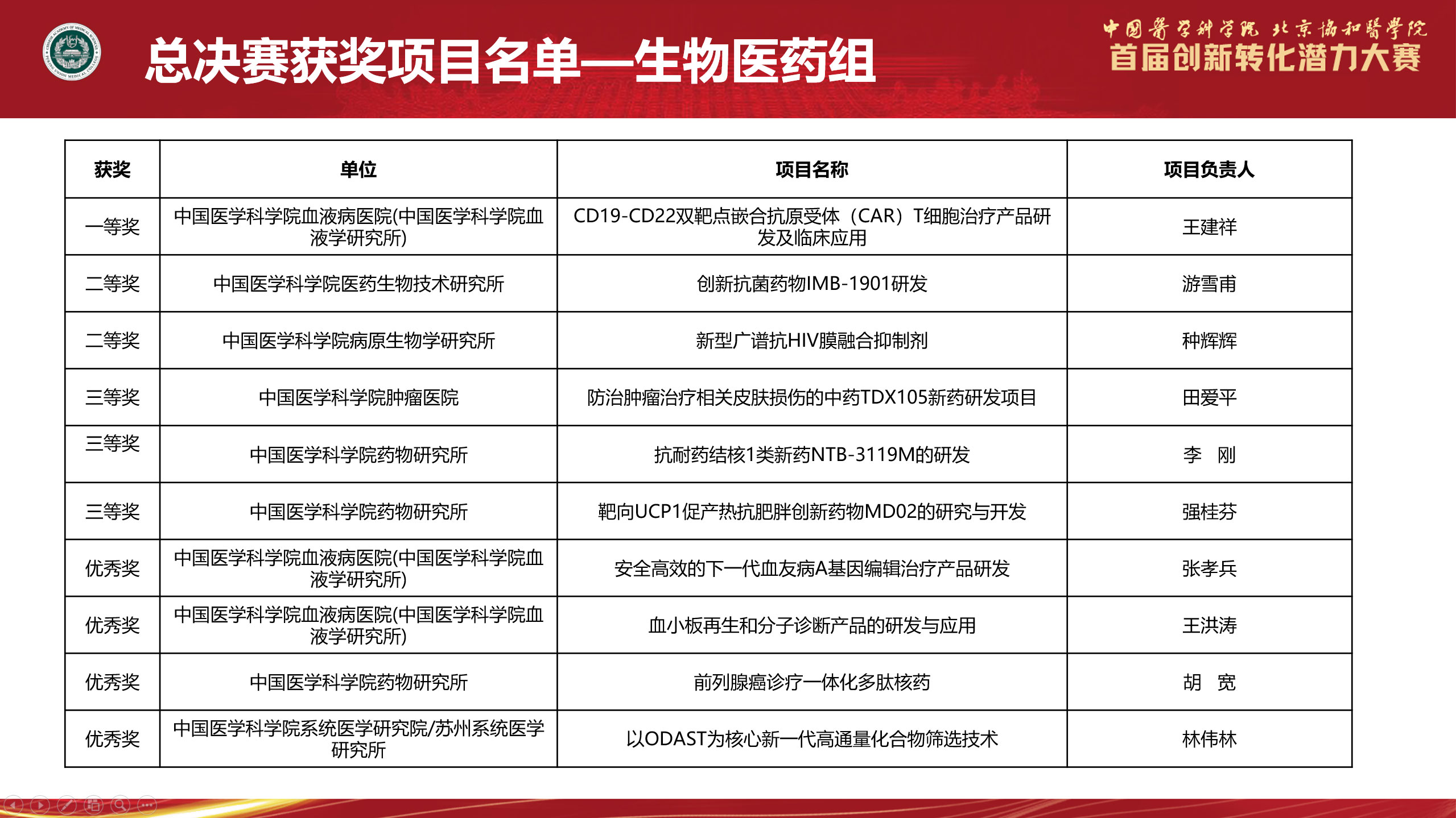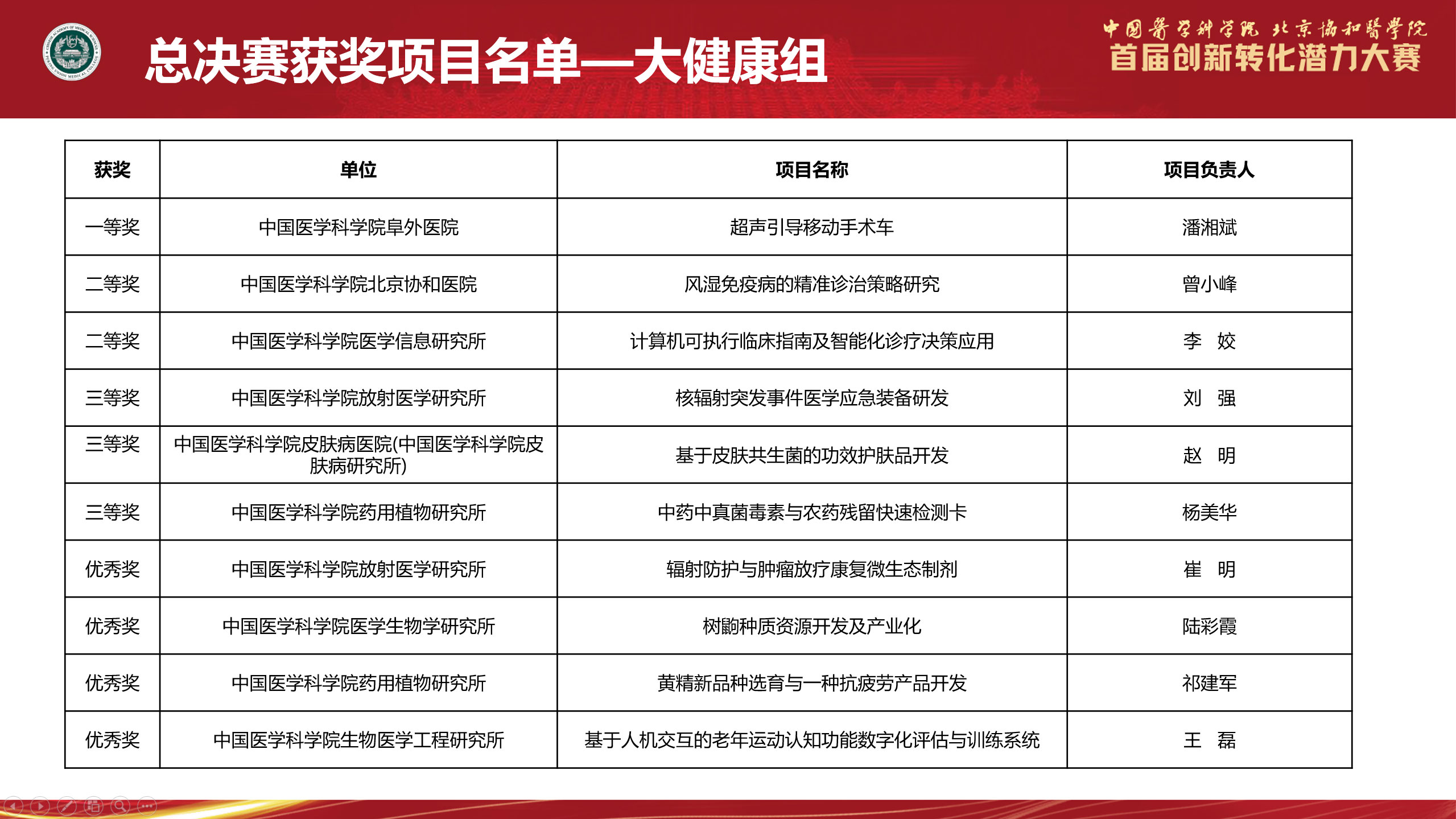 首屆創(chuàng)新轉(zhuǎn)化大賽獲獎項目