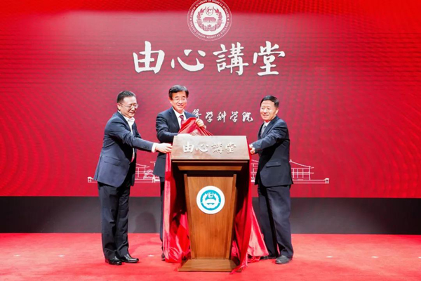 中國醫(yī)學(xué)科學(xué)院學(xué)術(shù)咨詢委員會主席王辰與副主席劉德培、吳沛新共同為《由心講堂》揭幕。