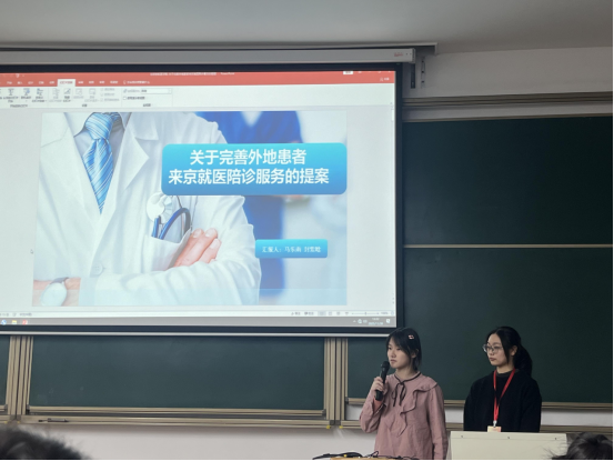 北京作為首善之都,匯聚國內(nèi)最優(yōu)質(zhì)醫(yī)療資源,是全國患者尋求高質(zhì)量醫(yī)療服務的首選之地,但外地患者來京就診過程中往往面臨流程不熟、陪同缺失、信息不對稱等諸多難題。馬樂雨、封紫晗團隊以協(xié)和醫(yī)院為調(diào)研樣本,通過深入訪談與線上問卷相結合的方式開展系統(tǒng)調(diào)研,最終形成兼具針對性與可行性的提案。提案建議建立陪診服務法律及監(jiān)管體系,實現(xiàn)陪診服務全面透明管理;創(chuàng)新采用“互聯(lián)網(wǎng)+陪診”模式,以北京為試點構建供需雙向匹配機制;同時通過多渠道推廣就醫(yī)流程、推動醫(yī)社校協(xié)同合作、優(yōu)化陪診資源配置等舉措,既著力提升外地患者就醫(yī)體驗,也助力醫(yī)療資源更合理高效利用。