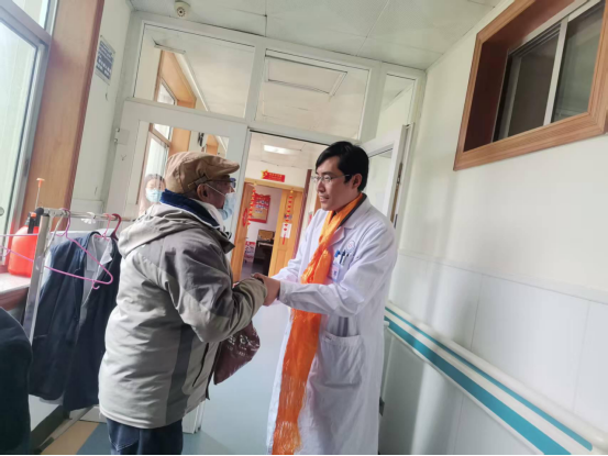 得益于及時干預(yù),患者血小板快速回升,顱腦出血得到有效控制,血腫逐步吸收。隨著意識恢復(fù)、肢體活動能力改善,老人最終實(shí)現(xiàn)生活自理、病情穩(wěn)定。為表感激,波拉向全體醫(yī)護(hù)人員獻(xiàn)上潔白哈達(dá),更在出院當(dāng)日特意等待出診歸來的張廣吉,鄭重贈予他一條象征尊貴與至高敬意的金黃色哈達(dá),雙手合十鞠躬致謝——這份來自雪域高原的深情,正是醫(yī)患同心、生命相托的最好見證。