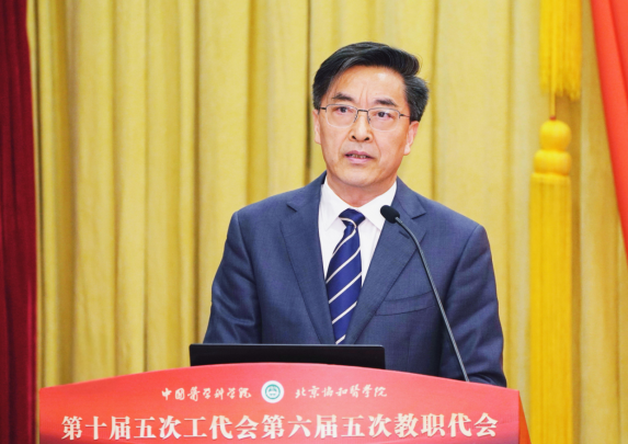 2025年4月24日,中國(guó)醫(yī)學(xué)科學(xué)院北京協(xié)和醫(yī)學(xué)院第十屆五次工代會(huì)暨第六屆五次教代會(huì)于吳憲大樓八樓報(bào)告廳順利召開(kāi)。218名正式代表、列席代表齊聚一堂,離退休老領(lǐng)導(dǎo)、人大代表、政協(xié)委員等各界代表也受邀參會(huì),共同為院校發(fā)展謀篇布局。會(huì)議由院校紀(jì)委書(shū)記、工會(huì)主席王崢主持。