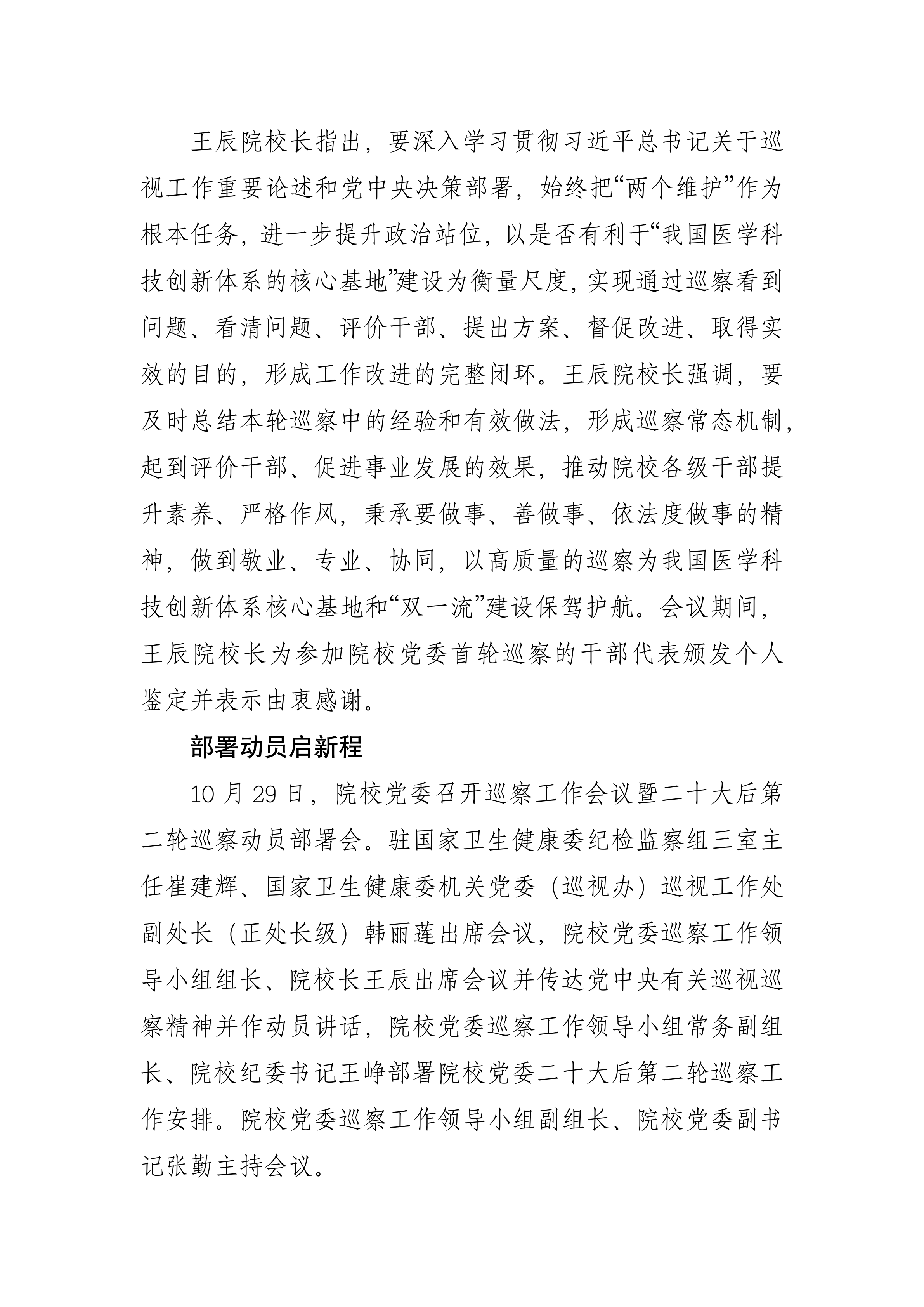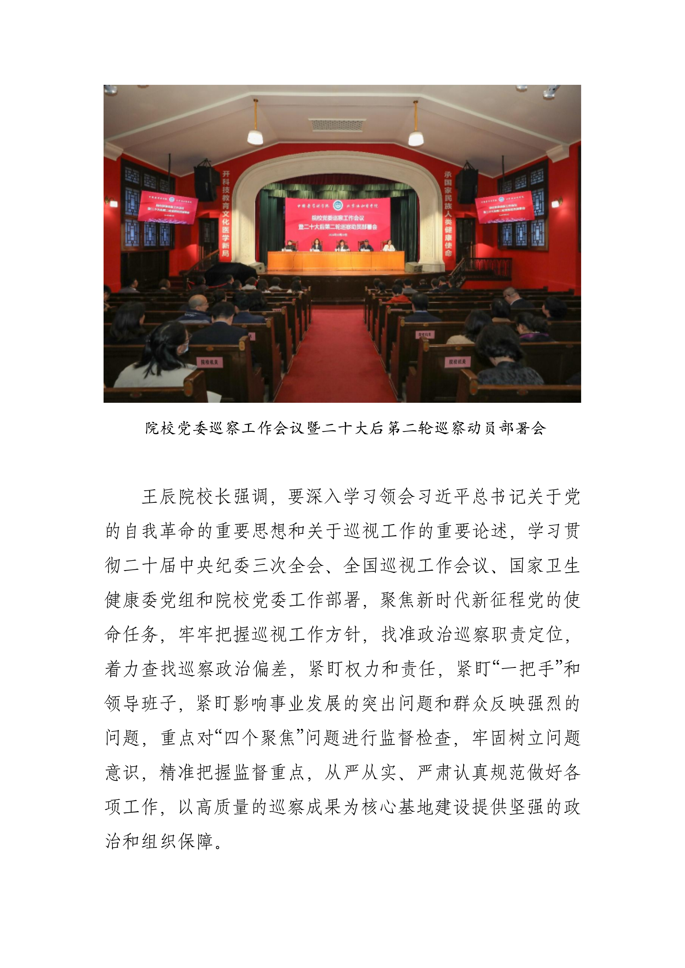 王辰院校長(zhǎng)強(qiáng)調(diào),要深入學(xué)習(xí)領(lǐng)會(huì)習(xí)近平總書記關(guān)于黨的自我革命的重要思想和關(guān)于巡視工作的重要論述,學(xué)習(xí)貫徹二十屆中央紀(jì)委三次全會(huì)、全國(guó)巡視工作會(huì)議、國(guó)家衛(wèi)生健康委黨組和院校黨委工作部署,聚焦新時(shí)代新征程黨的使命任務(wù),牢牢把握巡視工作方針,找準(zhǔn)政治巡察職責(zé)定位,著力查找巡察政治偏差,緊盯權(quán)力和責(zé)任,緊盯“一把手”和領(lǐng)導(dǎo)班子,緊盯影響事業(yè)發(fā)展的突出問題和群眾反映強(qiáng)烈的問題,重點(diǎn)對(duì)“四個(gè)聚焦”問題進(jìn)行監(jiān)督檢查,牢固樹立問題意識(shí),精準(zhǔn)把握監(jiān)督重點(diǎn),從嚴(yán)從實(shí)、嚴(yán)肅認(rèn)真規(guī)范做好各項(xiàng)工作,以高質(zhì)量的巡察成果為核心基地建設(shè)提供堅(jiān)強(qiáng)的政治和組織保障。