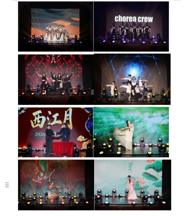 由離退休教職工組成的“協(xié)和音”合唱團(tuán)以悠揚(yáng)恢弘的《壯美延安》與歡快靈動(dòng)的《新年好》驚艷開場(chǎng)。婉轉(zhuǎn)旋律承載信仰之力,輕快節(jié)奏傳遞新春喜悅,為聯(lián)歡會(huì)正式拉開序幕。博雅合唱團(tuán)傾情演繹《瑤山夜歌》《天耀中華》,抒發(fā)新時(shí)代中華兒女的家國(guó)豪情與民族自信。校舞蹈隊(duì)的《大漠沙?!泛臀璧复疅恫杌ㄩ_了》《蘇公堤》《念琵琶》唯美登場(chǎng),裙裾輕揚(yáng)間,東方美學(xué)的浪漫與韻味盡顯,意境悠遠(yuǎn),引人沉醉。相聲《西江月》創(chuàng)意十足,用幽默的對(duì)白與生動(dòng)的演繹,將對(duì)科研人的祝福送進(jìn)協(xié)和人的心中。歌曲《Love in the dark》《烏蘭巴托的夜》《海芋戀》,將青春熱忱與純粹美好盡情傳遞。飛揚(yáng)舞蹈團(tuán)的《奔跑的青春》、NINEVER女團(tuán)的《What is Love》、Chroea Crew街舞社的《Hands Up》與《Swag it Out》,以及舞蹈串燒《You and me》《Girl boss》《Talk that talk》點(diǎn)燃全場(chǎng),以飽滿熱烈的青春姿態(tài)展現(xiàn)協(xié)和青年學(xué)子的蓬勃朝氣與無限活力。院校老師們帶來的歌舞樂器表演《不忘初心》《瘋狂動(dòng)物城》,又以多元形式詮釋為醫(yī)為師的赤誠(chéng)初心。老師和同學(xué)們以飽滿熱忱登臺(tái)獻(xiàn)藝,用精湛表演致敬過往時(shí)光,更將青春的憧憬與對(duì)未來的希冀娓娓訴說。