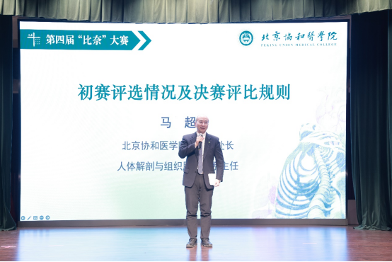 教務(wù)處長(zhǎng)、基礎(chǔ)學(xué)院人體解剖與組胚學(xué)系主任馬超代表初選評(píng)委專家組報(bào)告初選結(jié)果及決賽評(píng)比規(guī)則