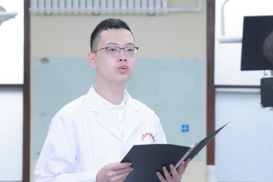 2022級八年制醫(yī)學(xué)生代表盧翰博同學(xué)在發(fā)言開頭引用現(xiàn)代解剖學(xué)之父維薩里的名言“解剖學(xué)是醫(yī)學(xué)的基石”,表示自己今天正是在這古韻悠長而又生機勃勃的九號院里踏上這塊基石,憧憬著拾級而上,邁入醫(yī)學(xué)殿堂的精彩與神圣。有幸在中國最高醫(yī)學(xué)學(xué)府學(xué)習(xí),要牢記科學(xué)醫(yī)學(xué)之初心,從基礎(chǔ)做起,從上好每一堂解剖課做起。他還特別提到今天一起參加開課儀式的還有我們尊敬的大體老師們。他們沒有言語,卻最生動地講述著奉獻精神;他們沒有動作,卻教會我們?nèi)梭w的奧秘;他們沒有表情,卻用最肅穆的神態(tài)讓我們感受到生命之重,靈魂之重。解剖課是知識的傳授,更是靈魂的交流,希望珍惜大體老師提供的學(xué)習(xí)機會,增本領(lǐng),長才干,未來才會成為一個更好的、懷有仁心的醫(yī)者。同時,作為新時代的協(xié)和人,要繼承先輩們的醫(yī)者初心,謹記“尊科學(xué)濟人道”的校訓(xùn),心懷“悲憫、專注、自省”的校風(fēng),賡續(xù)協(xié)和精神,成為國之大醫(yī)。