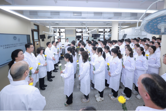 2025年3月11日上午8時,東單三條九號院解剖樓實驗室里氣氛莊重,北京協(xié)和醫(yī)學(xué)院2022級八年制醫(yī)學(xué)專業(yè)人體解剖學(xué)開課暨白大衣授予儀式在這里舉行。這場儀式不僅是同學(xué)們醫(yī)學(xué)知識學(xué)習(xí)的開端,更是對醫(yī)學(xué)精神傳承的重要時刻。