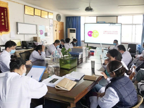 趙大春醫(yī)生(左四)在西藏自治區(qū)人民醫(yī)院主持多學(xué)科會(huì)診