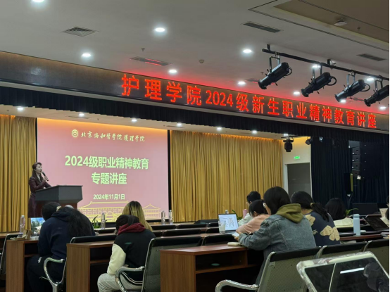為幫助2024級(jí)學(xué)生加快形成專業(yè)態(tài)度和專業(yè)價(jià)值觀,提升專業(yè)責(zé)任感和認(rèn)同感,為未來職業(yè)生涯奠定基石,北京協(xié)和醫(yī)學(xué)院護(hù)理學(xué)院在2024年11月1日、16日和23日為2024級(jí)護(hù)理學(xué)專業(yè)新生開展職業(yè)精神教育講座。學(xué)院黨委書記安道彩,榮獲院校杰出護(hù)士稱號(hào)的協(xié)和醫(yī)院王曉杰、何悅,教學(xué)老師朱晨以及校長獎(jiǎng)獲得者朱夢涵、優(yōu)秀推免生楊詩瑩為同學(xué)們分享自身對護(hù)理專業(yè)價(jià)值與內(nèi)涵的理解,帶領(lǐng)同學(xué)們一起感受護(hù)理職業(yè)精神的魅力,引導(dǎo)新生思考個(gè)人職業(yè)發(fā)展規(guī)劃。活動(dòng)由學(xué)生工作辦公室李玉玲主任主持。