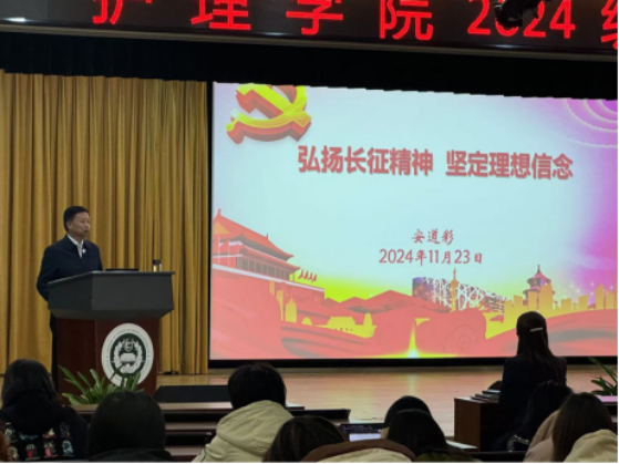 安道彩書記帶領(lǐng)同學(xué)們回顧歷史,探尋長征精神源頭。他指出,第五次反圍剿敗北,紅軍被迫戰(zhàn)略轉(zhuǎn)移,民族危在旦夕,在此絕境,長征精神磅礴而生。將家國大義置頂,理想信念如磐,堅(jiān)信正義必臨;無畏艱難,愿付一切護(hù)國安民;獨(dú)立自主、實(shí)事求是,扎根現(xiàn)實(shí)覓生機(jī);顧全大局、嚴(yán)守紀(jì)律、緊密團(tuán)結(jié),聚磅礴之力;依靠人民、生死與共、不懈奮斗,固勝利之本。他表示,協(xié)和學(xué)子,當(dāng)牢記使命,追紅色足跡,練強(qiáng)本領(lǐng),承先輩志,為健康中國建設(shè)添磚加瓦。