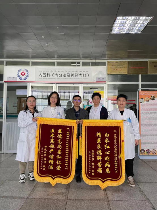 針對(duì)西藏罕見病診治短板,她牽頭多學(xué)科協(xié)作,實(shí)行“一人一策”。一位被罕見腦血管動(dòng)靜脈瘺折磨的患者因此得以迅速開展手術(shù)治療,轉(zhuǎn)危為安?;颊咛匾馑蛠礤\旗,“情暖人心,醫(yī)德高尚”八個(gè)字,道出了高原群眾對(duì)援藏醫(yī)生的深深敬意。