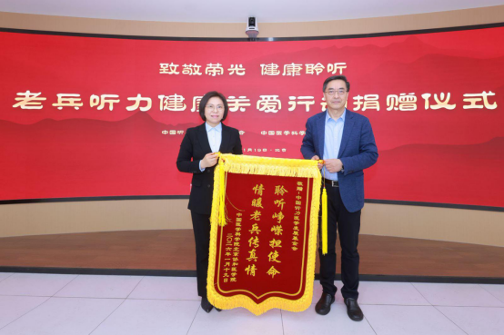 儀式上,中國聽力醫(yī)學(xué)發(fā)展基金會向院校頒授捐贈牌,院校向基金會回贈錦旗表達謝意。在溫馨的助聽器發(fā)放環(huán)節(jié),與會領(lǐng)導(dǎo)共同為符合條件的老兵代表發(fā)放助聽器,并合影留念。隨后,基金會組織專業(yè)驗配師為院校老年退役軍人提供驗配調(diào)試及使用指導(dǎo)。