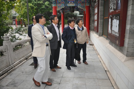 孔德領(lǐng)副所長向陳洪鐸院士、宋冰教授一行介紹北京協(xié)和醫(yī)學(xué)院的歷史