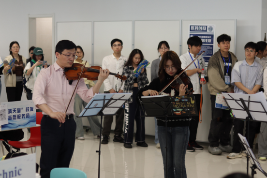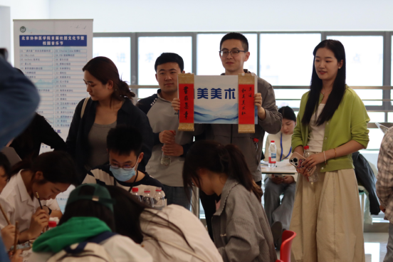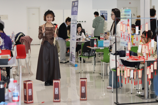 下午14時(shí),北區(qū)A2棟二層平臺(tái)成為文化交流的舞臺(tái),涵蓋學(xué)術(shù)、藝術(shù)、體育等領(lǐng)域的36個(gè)研究生和本科生社團(tuán)齊聚一堂,通過(guò)創(chuàng)意互動(dòng)展現(xiàn)獨(dú)特魅力。愛(ài)樂(lè)樂(lè)團(tuán)以音樂(lè)競(jìng)答普及樂(lè)理知識(shí),現(xiàn)場(chǎng)路演燃爆全場(chǎng);Chorea Crew街舞社以“螃蟹步”教學(xué)點(diǎn)燃參與者的熱情;和光攝影社設(shè)置校園打卡點(diǎn)攝影挑戰(zhàn),定格春日協(xié)和之美;和美美術(shù)社的扇面創(chuàng)作讓藝術(shù)靈感自由流淌;括羽協(xié)會(huì)的“反手發(fā)球挑戰(zhàn)”吸引羽毛球愛(ài)好者一展身手;培根社則通過(guò)“中藥謎語(yǔ)猜猜樂(lè)”和“期刊壺投擲賽”,在趣味中融合學(xué)術(shù)與傳統(tǒng)。此外,醫(yī)藥健康創(chuàng)投會(huì)的“職涯拼圖”匹配挑戰(zhàn)、職業(yè)發(fā)展促進(jìn)研究會(huì)的模擬面試等環(huán)節(jié),都吸引了大量同學(xué)駐足參與,現(xiàn)場(chǎng)歡聲不斷。