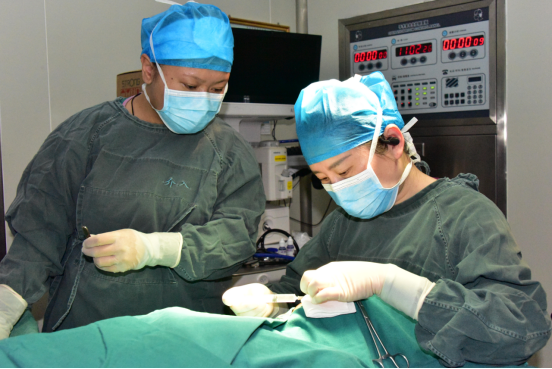 黃莉明醫(yī)生(右一)與她的藏族皮膚科徒弟慈央醫(yī)生,正在為白癜風(fēng)患者扎西進(jìn)行西藏自治區(qū)首例白癜風(fēng)表皮移植手術(shù)