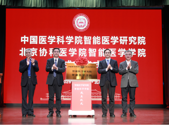 在全體與會人員的共同見證下,鄭忠偉監(jiān)察專員、鄧海華書記、吉訓(xùn)明院校長、胡盛壽院士為中國醫(yī)學(xué)科學(xué)院智能醫(yī)學(xué)研究院與北京協(xié)和醫(yī)學(xué)院智能醫(yī)學(xué)學(xué)院揭牌。
