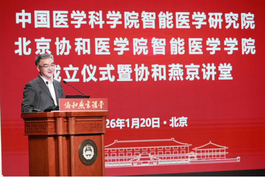 2026年1月20日,中國醫(yī)學(xué)科學(xué)院智能醫(yī)學(xué)研究院與北京協(xié)和醫(yī)學(xué)院智能醫(yī)學(xué)學(xué)院成立儀式暨第六期協(xié)和燕京講堂在協(xié)和壹號禮堂舉行。這一舉措標(biāo)志著中國醫(yī)學(xué)科學(xué)院北京協(xié)和醫(yī)學(xué)院(以下簡稱“院校”)在智能醫(yī)學(xué)領(lǐng)域的系統(tǒng)性布局邁入新階段,旨在整合優(yōu)質(zhì)資源,構(gòu)建“醫(yī)學(xué)+人工智能”深度融合的創(chuàng)新體系,致力于打造國家智能醫(yī)學(xué)教育科技人才創(chuàng)新高地,為健康中國建設(shè)提供科技與人才支撐。出席活動的有國家衛(wèi)生健康委科技教育司監(jiān)察專員鄭忠偉,院校黨委書記、副院校長鄧海華,中國工程院院士、院校長吉訓(xùn)明,中國工程院院士、阜外醫(yī)院院長胡盛壽等,活動由副院校長楊濤主持。