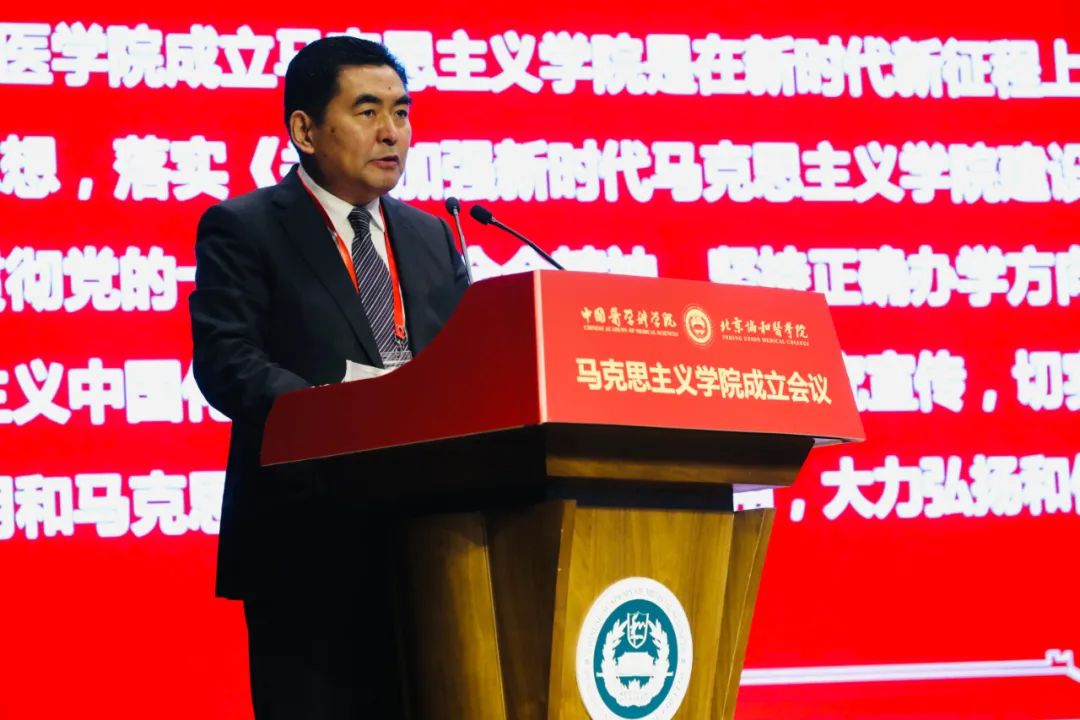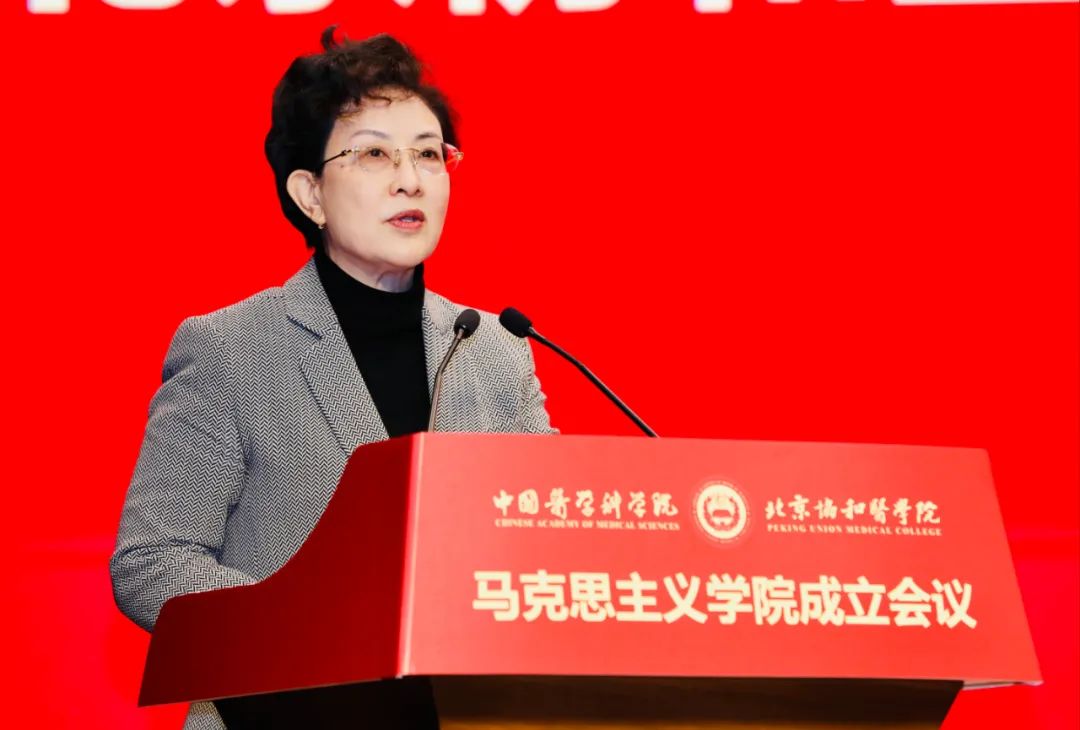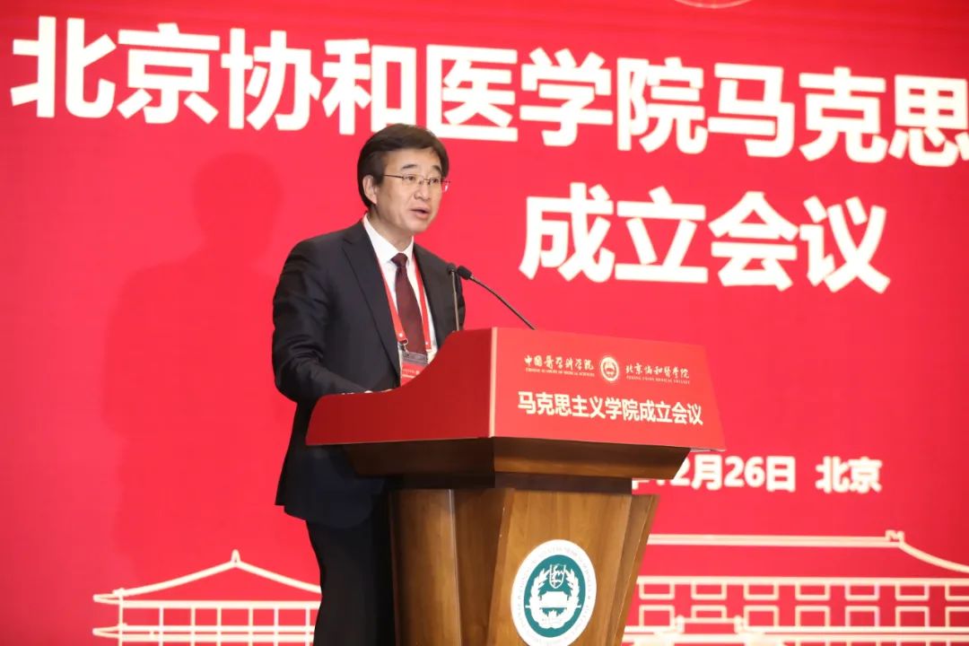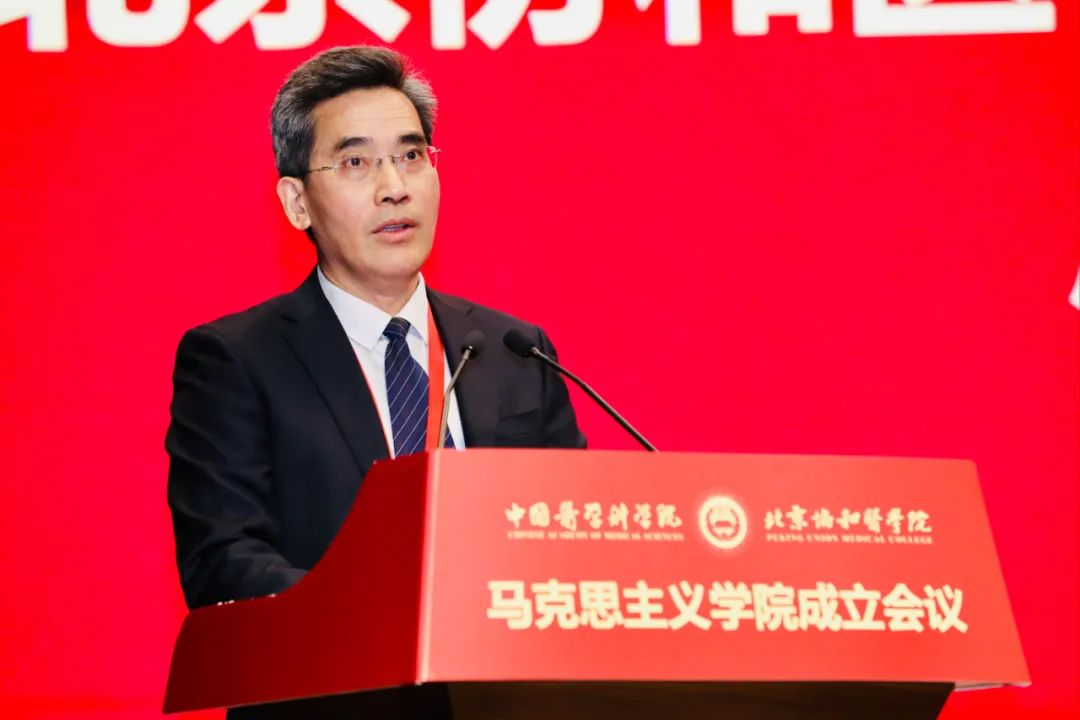 會上,國家衛(wèi)生健康委直屬機關黨委常務副書記楊建立宣讀國家衛(wèi)生健康委黨組書記、主任馬曉偉批示。馬曉偉指出,北京協(xié)和醫(yī)學院成立馬克思主義學院是在新時代新征程上全面貫徹習近平新時代中國特色社會主義思想,落實《關于加強新時代馬克思主義學院建設的意見》的重大舉措。要認真學習貫徹黨的十九屆六中全會精神,堅持正確辦學方向,堅持和加強黨的全面領導,聚焦馬克思主義中國化時代化最新成果的學習研究宣傳,切實發(fā)揮思想政治理論課立德樹人關鍵課程作用和馬克思主義理論學科引領作用,大力弘揚和傳承百年協(xié)和的優(yōu)秀基因和精神內核。