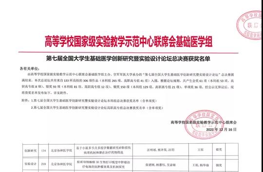 第七屆全國(guó)大學(xué)生基礎(chǔ)醫(yī)學(xué)創(chuàng)新研究暨實(shí)驗(yàn)設(shè)計(jì)大賽采取校賽-分區(qū)賽-全國(guó)總決賽晉級(jí)制,我校學(xué)生通過逐級(jí)參賽比拼,獲得總決賽晉級(jí)資格,最終取得了優(yōu)異成績(jī),展現(xiàn)了協(xié)和學(xué)子的風(fēng)采。