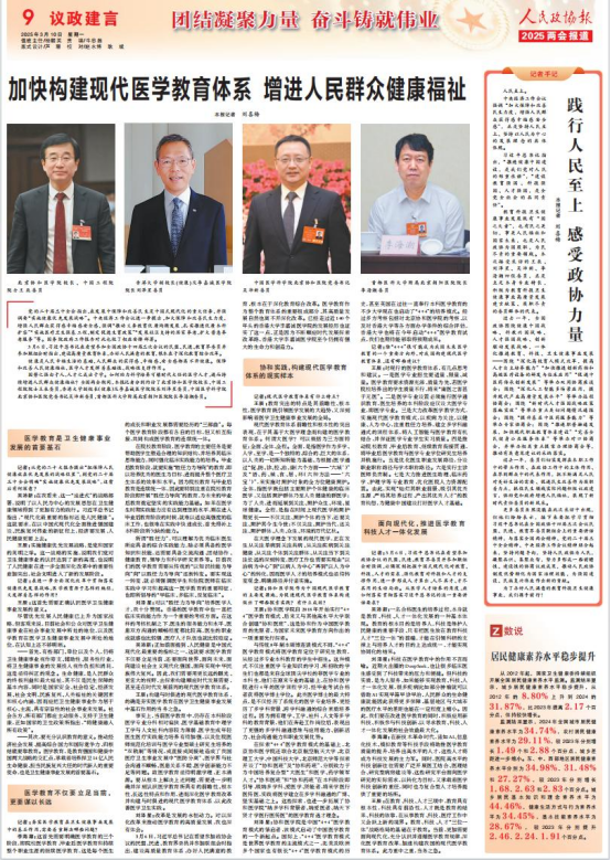 教育科技衛(wèi)生健康事業(yè)發(fā)展既有“國(guó)之大者”,也有民之關(guān)切,事關(guān)人民福祉和國(guó)家未來(lái),也是人民政協(xié)為國(guó)履職、為民盡責(zé)的重要領(lǐng)域。本次接受采訪的王辰、劉澤星、吳沛新、李海潮四位委員,正是立足本身專(zhuān)業(yè)特長(zhǎng),積極為教育科技衛(wèi)生健康事業(yè)高質(zhì)量發(fā)展建言獻(xiàn)策、履職盡責(zé)的委員群體的代表。